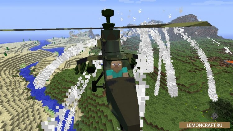 С модом MC Helicopter можно создать целый авиапарк в своем мире майнкрафт. С установкой этого мода будут добавлены различные самолеты и вертолеты. Все машины будут доступны для полетов, а также неплохо вооружены. Теперь вы сможете нападать на своих врагов с воздуха. Летать можно не только днем, но и ночью. Вся техника снабжена приборами ночного виденья. Крафт не очень дорогой, и вы сможете насладится полетами в самом начале игры.