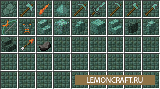 Мод на предметы из призмарина Abyss: Voice добавит в игру предметы и оружие, которые вы сможете обнаружить только в подводном мире. Мод добавит в игру большое количество стандартных блоков и предметов типа кирпича, заборов, лестниц и тому подобное. Кроме этого в игре появятся уникальные предметы, например шип защитника, лук и стрелы из призмарина, мясо осьминога, подводная маска. Так же в игре появятся новые мобы, которые обитают в морских глубинах.