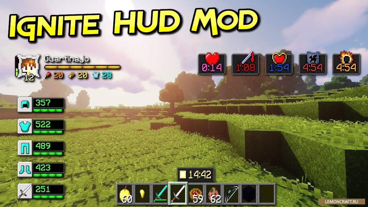 Небольшой, но довольно интересный мод Ignite HUD, позволяет изменить стандартный интерфейс игрока более новым, похожим на тот, который используется в РПГ играх.